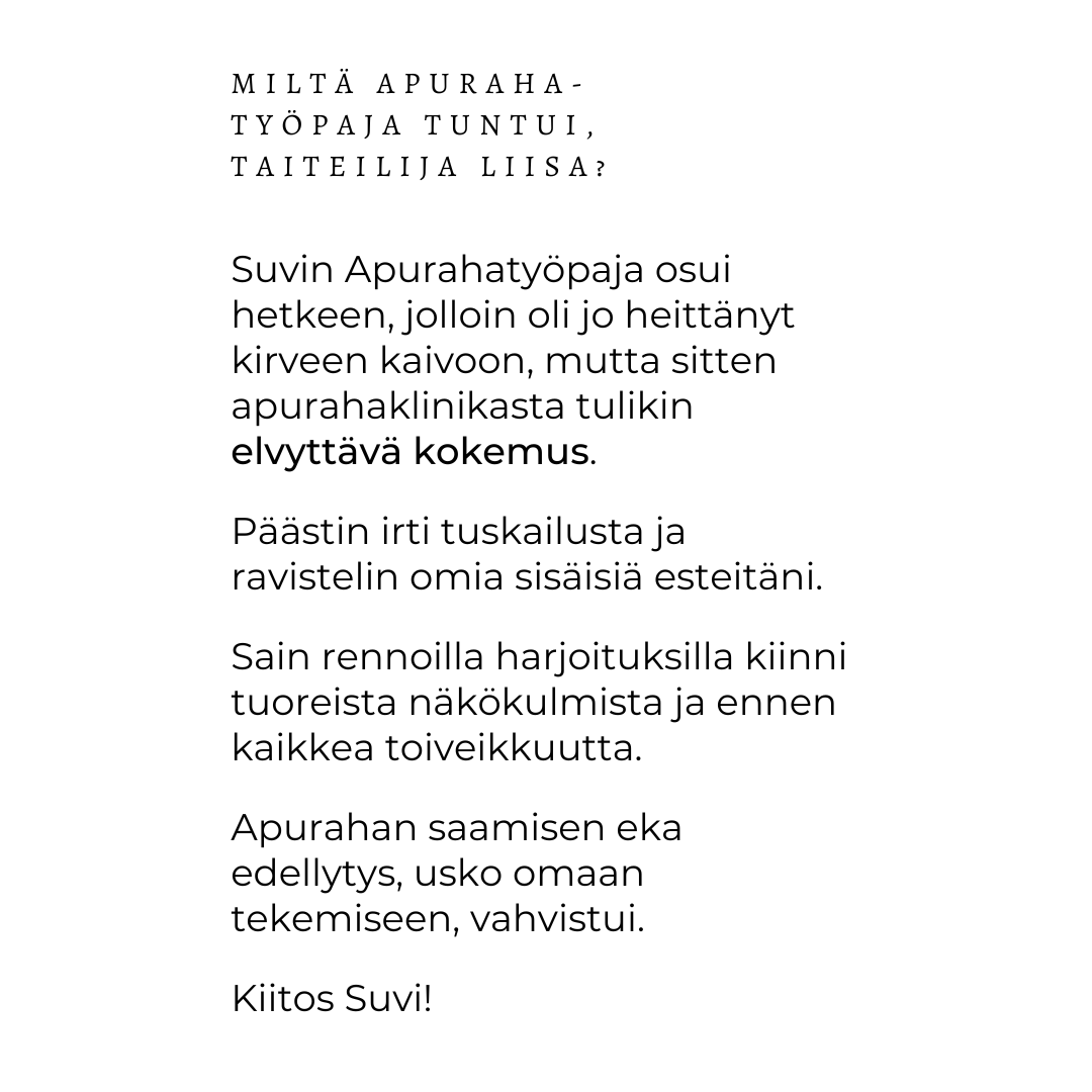 Kuuntele Apuraharänttiä-podcastista näyttelijä Helena Rängmanin fiilikset vastaavan työpajakokemuksen jälkeen!